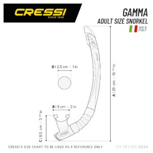 Ο Cressi Gamma είναι ένας compact και πρακτικός αναπνευστήρας, σχεδιασμένος για snorkeling και γενική χρήση στη θάλασσα, με έμφαση στην άνεση, την υγιεινή και την ευκολία στη μεταφορά. Ο αεροδυναμικός και λιτός σχεδιασμός του τον κάνει ιδανικό για ταξίδια και καλοκαιρινές εξορμήσεις, ενώ αποτελεί πολύ καλή επιλογή για δύτες και snorkelers που προτιμούν να χρησιμοποιούν τον δικό τους εξοπλισμό για μεγαλύτερη σιγουριά και καθαριότητα. Το επάνω splash guard μειώνει σημαντικά την είσοδο νερού από κύματα και πιτσιλιές, ενώ το ειδικό σύστημα συλλογής νερού στο κάτω μέρος βοηθά στην εύκολη αποβολή του, χωρίς να επηρεάζεται η αναπνοή.